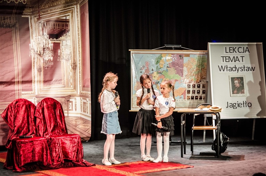 W dniu 20 czerwca społeczność Jagiełłowej Rodziny świętowała jubileusz 125 – lecia istnienia placówki. Z tej okazji na deskach Miejskiego Ośrodka Kultury zaprezentowany został spektakl jubileuszowy w wykonaniu Szkolnego Koła Teatralnego oraz uczniów z klas 4-8, którzy wspólnie przenieśli nas w czasy Króla Władysława Jagiełły. Ze sceny wybrzmiała cenna lekcją historii, a barwne stroje i tańce z epoki średniowiecza dopełniły niezwykłego, pełnego magii obrazu. Nie zabrakło także tańca nowoczesnego oraz wspólnego śpiewu, a także mocy serdecznych życzeń, wielu ciepłych słów oraz chwil wzruszenia. Zapraszamy do obejrzenia fotorelacji